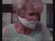 Pat Priest plays Linda who is captured and tied up when she uncovers her husband's unethical medical experiments. While the mad doctor keeps the sheriff busy, his assistant holds her hand-gagged in the lab before managing to wrest her hands behind her and get her tied and gagged with bandages. With the sheriff gone, she's given a sedative injection and spends a night drugged but still bound and gagged.
