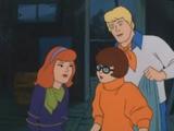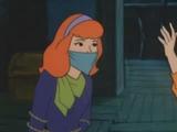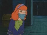 Danger-prone Daphne (Voiced by Heather North) is captured by a swamp witch and her zombie cohort. Fred and Velma track the villains back to an abandoned riverboat and discover Daphne trussed up and gagged and hidden under a sheet in a hidden compartment.