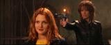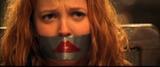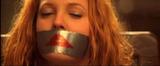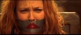 Drew Barrymore plays tough girl Dylan who is captured and tied up by the bad guy in this hyped up movie version of the TV series. He gags her with duct tape so he can talk to Charlie in peace, also so he can use some high tech gadgetry to track the phone signal and locate Charlie to kill him.