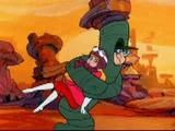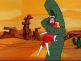 The Hooded Claw pursues Penelope and the Anthill Mob through a desert area and a creepy old ghost town, springing his usual array of wacky traps along the way, to try and do the girl in.