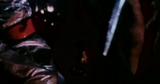 Caroline Munro plays Stella Star, the last hope to restore peace, justice, love, freedom and puppy dogs to a besieged galaxy threatened by the eeeeeevil Count Zarth Arn and his hidden super weapon. Crash-landed on a distant planet, Stella and her robot companion L are attacked by a tribe of (surprisingly acrobatic) primitives. After a brief firefight, the robot is smashed to bits and Stella is hauled off, trussed to a metal I-beam. Later we see her at the primitives' campsite, hung up by her ankles, squirming fetchingly until a lizard-masked interloper arrives on the scene, scares the mutants off with his piercing eye-beams and rescues her.