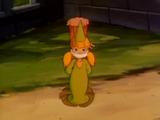 In this bit, Penny is captured while snooping by a director working for MAD who is trying to get her uncle killed during his big movie debut. Next, Penny is seen bound to a post and gagged, dressed in a green princess costume- about to be torched by a mechanical fire-breathing dragon unless her dim-witted uncle rescues her in time. The dog Brain however saves the day.