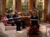 Kristen Miller plays Princess Stevenson in this comedy series set in the Bush White House. In this bit, Princess and two other staffers are captured by Austrian agents looking for the controls to the SDI system. They are gagged and tied to chairs, when George plunders in, thinking the agents are people from the cable company, looking for his illegal connection and is likewise captured. Princess and her bowling ball sized 'endowments' (the result of taking mammary enhancement pills, thinking they were memory enhancement pills) save the day.