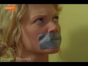 In this Australian Nickteens adventure show, gorgeous Cariba Heine plays Rikki Chadwick, one of a trio of young girls who discover they can transform into super-powered mermaids. In this episode, Rikki discovers the 50 note she just received as payment for a delivery is a counterfeit and goes to return it to the man who used it (believing he didn't know the bill was fake). Things spiral out of control quickly from there, when she spies a duffle filled with more fake bills. Rikki has her hands tied behind her and she's gagged with duct tape, before being locked in back room on the boat, as the crooks debate what to do with her. Rikki tries to use her cellphone to text for help. At first the text isn't believed, but when she doesn't return a callback (thanks to the phone being taken from her and crushed), her friends investigate the reason and then dash to rescue her.