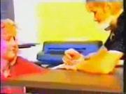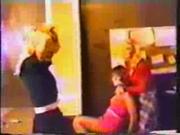 Finally, from defunct Cal-Star video comes this classic damsel in distress video starring Laurel Blake, Tiana Cambridge and Geri Alcott. In this tale of gagged girlies and bound babes, some crooks send sweet-faced by sinister gal (Laurel) and her ape-like thug Cruncher to wring some information about a missing diamond out of a detective's secretary (Tiana). The girl gets gagged and tied to her chair, but the arrival of the detective's sister (Geri) complicates things further and she has to be gagged and tied up too, stretched across the young lady's desk to boot. With nothing turning up at the office, she has Cruncher carry the secretary off to their hideout, leaving the otehr girl tied to the desk. she makes short work of her bindings afterward. Meanwhile the secretary awakens topless in just her panties and stockings, standing tied with her arms outstretched courtesy of a wooden pole across her shoulders. Additional bondage follows before Geri arrives to pull a rescue and leaves Laurel tied and gagged on the sofa. the girls take too long in binding her and Cruncher is on the scene to save his boss. tina and Geri are grabbed and stuffed in a closet. but since he can't leave the door (which would allow the girls to escape, Laurel has to crawl over to him to be untied. Geri and Tiana are removed from the closet and after Geri is divested of her outer clothing, more bondage is in store for both girls. Laurel has the upper hand, but cruel fate has one more trick up its sleeve before this Caper is concluded.
