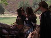 Creatures called Grimlocks invade the Halliwell household on Halloween night and send sisters Prue, Piper and Phoebe (played by Shannen Doherty, Holly Marie Combs, and Alyssa Milano respectively) back to colonial times, where at the fall festival -naturally- the girls are accused of witchcraft and sentenced to immediate hanging. On horseback , hands tied behind them and nooses around their necks, the girls are given a minute before a swat to the horse's butt leaves them dangling....