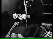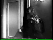 In this episode from the British TV series about a psychiatrist, Francesca Annis plays a babysitter named Mary who after checking to be sure her young charge is asleep, goes to her purse, dons a pair of tight-fitting gloves and takes out two short pieces of rope. She trashes the office of the man of the house (a doctor), takes off the gloves, gets a scarf, tacks a cloth strip to the inside of a closet door which she sets to lock, sits on the steps and ties her ankles together with one of ropes, gags herself with the scarf and ties the other rope into a loop just tight enough for her barely squeeze both hands through. Sitting on the floor she wriggles her hands down under her feet and back up behind her back. Mary hops into the closet and pulls the door shut behind her with the cloth strip. Later, the parents return and discover the chaos and that Mary is gone. The father dutifully calls the police. At a strategic moment, Mary begins crying out and throws herself at the closet door, getting their attention. Mary all but falls back into the doctor's arms and goes into hysterics as she is carried into the office and untied.