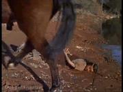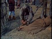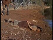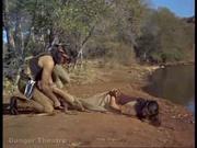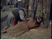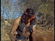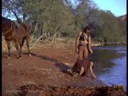 Jean Peters plays Nalinle in this classic western film about an Apache warrior's private war with the U.S. government for the decimation of his people. Fast asleep in the camp of what he's come to perceive as a friendly tribe, Massai is captured by the cavalry with the blessing of the chief. After the warrior is taken away by the soldiers, Santos walks over to where Nalinle lies hidden gagged and bound to keep her from warning Massai of the attack and cuts her free. Later having escaped and sworn revenge against Santos, Massai returns and kidnaps Nalinle. In the wilderness, he dumps the poor girl by a stream; as she desperately drinks from it, Massai ties a rawhide tether to a tree and before dragging Nalinle away and tying her hands behind her back. He then ties her ankles to the tether so that the water is tantalizingly close, but out of reach while he goes off to commit sabotage against cavalry forces close by. He returns with a fresh horse and frees her from her bonds.