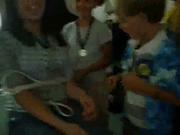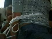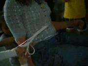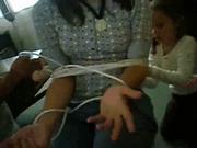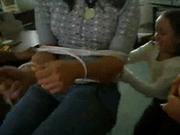 , a young woman (I presume their teacher or her assistant) is tied to a chair by a swarm of first grade kids.