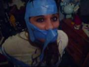 comes this video of a friend of hers voluntarily being done up practically head to foot with blue tape and then breaking herself out of it.