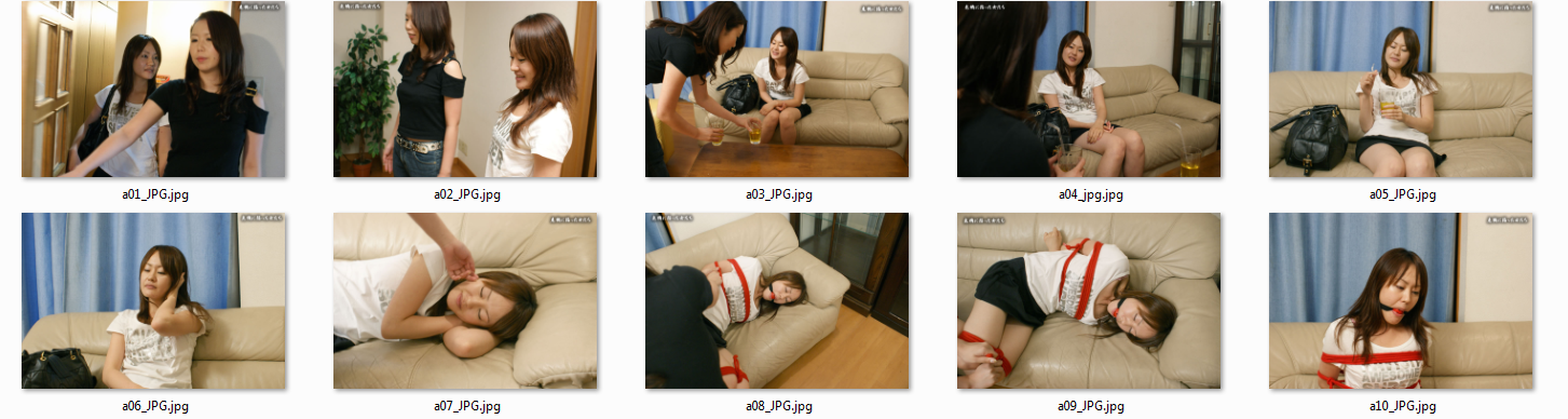 comes this brief photo set of girlfriends getting together for drinks at an apartment, but all is not as it seems when a drug is slipped into someone's drink and they wake up bound and ball-gagged.