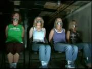 During the length of this rock video, four anonymous lovelies sit in metal folding chairs, gagged and bound with duct tape as the band plays.