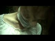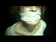 A young woman sits OTM gagged and tied to the chair throughout this video by death metal band Trepalium. The lead singer enters the scene and threatens her with sundry sharp pointy implements as she tries to escape her bonds.