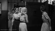 In this early prison picture, after an inmate dies from her injuries inflicted during interrogation by the prison's cruel Head Matron, the other ladies organize a revolt, using scissors taken from the prison laundry as shanks and the old "Guard, I'm sick" ploy. They quietly capture the guards ( played by Gertrude Michael, Mae Clarke, Mary Newton and an unknown actress), gag them and lock them in a padded cell after three of the inmates don their uniforms so they can move around the prison unnoticed.