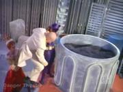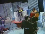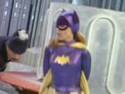 We conclude our Yvonne Craig mini-marathon with an extended clip from this episode in which Egghead, Olga and her band of Cossacks are terrorizing Gotham. toward the end of the episode, Batgirl forces Egghead to take her to Olga's hideout, but it's a trick to trap her-- which she suspected from the beginning and enters the ice house from another door. Batgirl thrashes the Cossacks so Olga dumps some caviar on the floor and Batgirl slips and falls leaving her stunned. Batgirl has her hands tied behind her and is forced to dance the Cossack Sabre Dance- that is dance to avoid the Cossack swords that slash and stab at her. The timely arrival of the caped crusaders keeps her from harm's way, albeit temporarily as the boys again thrash the Cossacks, Olga has Egghead dump Batgirl in the huge vat of caviar to drown...