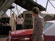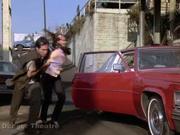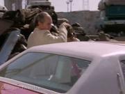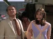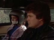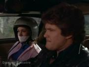 In this extended clip, Robin Dearden plays snoopy reporter Liberty Cox who is captured while recording the two baddies who are arguing over the recent fatalities that were just supposed to be camera friendly accidents to boost ratings for cross country auto race on a flagging TV network. Held bound and tape gagged in a motel room Liberty watches and mmphs as the baddies decide to use her as a saboteur for the police to find- after she's had a fatal accident planting another bomb of course. they take Liberty to a spot of the race track, plant the bomb and leave her there gagged, tied and anchored to a rock- but Micheal and KITT are on the case and save her in the nick. Oddly, while giving chase to the baddies Micheal leaves Liberty with her hands tied and mouth taped up .