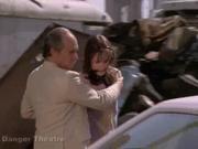 Next, Elyssa Davalos plays Julie Robinson, the blind witness to the murder of a migrant worker at a junkyard. he baddies kidnap her from her apartment and she seen later hands tied behind her and cleave gagged with a blue bandanna. Micheal rides to the rescue, but he gets clobbered on the head before he and KITT are lifted and dumped into the car crushing machine. The boss drives off with Julie to recover an incriminating file from his office, but the other workers have a change of heart and go to Julie's aid.