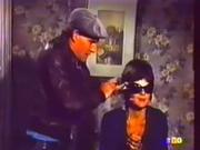 In this brief clip from the classic TV romantic comedy, Jessica Walter plays a woman kidnapped by a man she is led into an apartment bound, gagged and blindfolded her various restraints cleverly hidden by her heavy coat, a wide scarf, a head scarf and large black sunglasses.