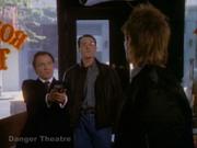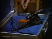 Brigitta Stenberg plays Maria Romburg who may or may not be the grand daughter of an elderly German toy shop owner who's been forced to hide some gold by the Stasi (the East German secret police) . The Stasi agents come to reclaim the gold and so MacGyver is left tied to a chair upstairs (not shown) while the old man and Maria are taken to the basement. Maria is gagged and tied to a pipe with the old man as witness as boolt after bolt is fired at her from a pistol crossbow to force him to talk. Initially he refuses to cooperate. But memories of his grand daughter's kidnapping at the Berlin wall make him break down and tell the baddies where he's hidden the gold...