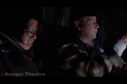In this lengthy clip from the Showtime TV series, Fairuza Balk plays Stacia, who finds herself unwittingly the center of a turf war between serial killers, one who acts as a trucker, the other a hitch-hiker. Stacia accepts a ride from the trucker mostly to escape the attentions of the other guy, but during the ride the trucker goes on a long rambling speech about hunters and prey, which he claims can be explained if Stacia will reach into the glove compartment. Stacia is distracted by this and so the trucker reaches up behind her and slams her head repeatedly into the dashboard, knocking her unconscious. Stacia wakes up handcuffed and securely buckled into her seat as the trucker continues his rambling and pulls off one of her ear rings as a trophy (ouch!) Later, they pick up the other killer and they try to settle their differences peaceably, but Stacia goads them into trying to kill each other instead of her and guns are drawn. Stacia stomps on the brakes and the guys are catapulted through the windshield, but recover well enough to beat the crap out of each other. Stacia struggles for one of the guns to no avail. An ambulance arrives as the boys lay slumped on the road--- unfortunately its the roving base for another pair of killers who finish off the trucker and hitch-hiker (not shown) and Stacia is revealed strapped down and massively gagged with medical tape to be "saved for later" as the ambulance disappears into the fog....