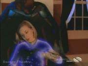Deanna Milligan plays Nightwoman in this episode about an abducted infant prince. With our hero sidelined due to some serious mystical mojo summoned by the baddie's voodoo priestess, Nightwoman charges in to disrupt the ritual and recover the doll the woman has been using to cast her spells. A brief battle of magical fire vs electricity ensues, with Nightwoman taking the worst of it and getting knocked unconscious. The lead baddie has her tied to a chair, but our hero has recovered his strength thanks to NW's intervention and dashes to the rescue.
