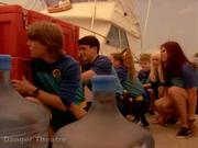In this brief clip from the popular Australian kids show, Brooke Anderson plays Cass and Olivia Hiddlestone plays Sallyanne, who are among a group of kids trying to help mermaid Neri recover the Synchronium, a powerful sphere that can control the elements. On the pier, the kids are quickly spotted by one of the baddies, captured and tied up in a bunch. However Kal has broken the hypnotic influence he was under that forced him to help the baddies and he helps them escape.