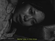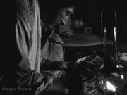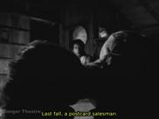 In this extended clip, Kyōko Kishida plays a widow forced to stay in a shack at the bottom of a steep sand pit and dig sand for a village in exchange for food and water. She's soon joined by an entomologist who becomes trapped by the villagers. Later in the film, he gags her and ties her up with cloth scraps to use as a bargaining chip to try and force the villagers to haul him back up out of the pit with the rope winch they use to lower supplies. The attempt fails, with the villagers merely hauling him up part way before dropping him. He returns to the cabin and un-gags the girl and begins to question her about their rather bleak situation. He eventually unties her.
