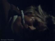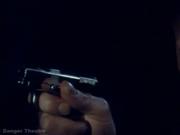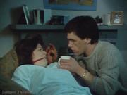 In this extended clip from the classic TV program about displaced New York City cop working with Scotland Yard, Julia Watson plays Terry, whose chance encounter at the laundromat leads her to be taken captive by a serial killer who has been terrorizing London for weeks. She lays unconscious on the couch bound and cleave gagged as the radio recounts a recording left by the killer with the police. Awakening, she's horrified to find herself a prisoner, but she wants answers from him as well. Later in a van in the killer's hideout, she lays in the back with her hands bound with chains and he brings her some hot soup. Later, he kidnaps Detective Makepeace (played by Glynis Barber) and she's seen cleave-gagged with white cloth her hands bound with chains behind her back. At a hideaway in the woods, there's more talking and it's revealed he's out to kill his bitch of an ex-wife for being unfaithful to him. As our hero runs to save Makepeace, a shot rings out...