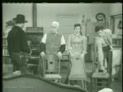 Nancy Gilbert returns as Calamity and a young Angie Dickinson plays Anna Louise Beaumont in this episode from the classic TV western, in which a crooked gambler travels under an assumed name to ruin the reputation of a rival and target a government courier. In this clip, the baddie takes over Miss Beaumont's home and has Calamity get a clothesline and the others fetch chairs. He ties everyone up in a chair so he can catch some sleep, as he's been on the run for days. He finally wakes up with everyone still tied in their seats and then unties Calamity so she can make some coffee, but the judge asks that she be allowed to hang out the wash too before it goes mildewy and the baddie agrees. At that moment, Buffalo and a cavalry man happen to be passing by and Buffalo realizes the arrangement of clothes on the line is Morse Code for SOS. A gunfight follows...