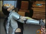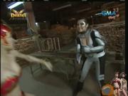 In this clip Darna and a companion are attacked by HawkWoman, but her efforts are frustrated and so she leads our heroine to a warehouse where two young women (one of whom is played by Roxanne Barcelo) are tied to lumber, awaiting a gruesome end by buzzsaws. Battle ensues...