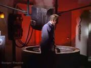 When Kaos starts funding its operations by selling off rare oil paintings and replacing them with convincing forgeries, Max and Agent 99 (played by Barbara Feldon) infiltrate the museum where the paintings are disappearing. Toward the end of the episode, the agents are captured by Kaos painter Bronzefinger and tied side by side inside a metal drum, about to bronzed to death with searing hot metal. As the timer winds down, Max and 99 scramble for his shoe phone to try and call for help, but then 99 remembers her razor ring and uses it to cut the ropes, freeing the pair. Bronzefinger attacks Max, and 99 gets knocked out as the boys duke it out, before the baddie winds up taking a bronze bath (ouch!!)