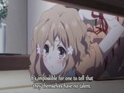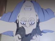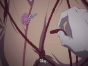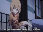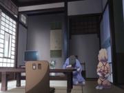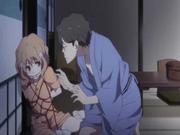 In this episode of anime Hanasaku Iroha, hot springs hotel waitress trainee Ohana Matsumae pulls a draft written by hotel guest and amateur novelist Tarou Jiroumaru from the trash after cleaning his room, and proceeds to read it. The writer, whose works were inspired by spying on Ohana, learns of her discovery and decides to abduct the young waitress, using a book on shibari to elaborately tie her up. While her co-workers search for her, Ohana not only helps him figure out how to do a tortoise-shell tie, but also gives her opinion on his novel-in-progress. Once found out, Tarou finds that he doesn't have enough rope to tie up the entire hotel staff and hurriedly makes his escape.