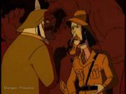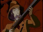 In this cartoon based on the popular movie, Van Pelt captures the kids Peter and Judy to use as bait to catch his most dangerous and elusive prey, Alan. The kids are tied together back to back, over-gagged and locked in a cage, unable to warn Alan its a trap when he sneaks into Van Pelt's compound that night. Van Pelt's rival hunter Van Richter prevents Pelt from shooting the man outright and suggests they compete for the kill and so the next morning Alan is forced to run for his life and kids left to their own devices to escape the cage and help him