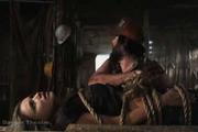 Katrina Bowden plays Allison in this darkly comic inverted slasher film in which two slacker hillbillies are attacked by a group of evil college brats, led by a psychopath with a vendetta against hillbillies. Toward the end of the film, Allison is kidnapped by him and taken to a sawmill and tied to some lumber. After menacing her for a while, he leaves and our hero Dale shows up, suited up for the final showdown armed with a chainsaw. He struggles to untie Allison, but Mr. Creepy McBurnface announces over the old PA system he's coming down to kill them both and turns on the buzzsaw. The boys fight it out as Allison inches toward the spinning blade and a terrible end !!