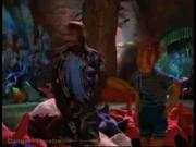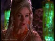 In one of the goofier episodes of the series, Rene O'Connor plays Gabrielle who gets a conk on the head and comes to believe she's married to a chauvinist pig of a merman with designs on ruling his people. In this clip, Gabby wakes up hanging by her ankles with her hands tied behind her back while the three fishy kids taunt and tease her. A trapdoor is opened and Gabby is dropped in as food for the brats' pet shark ! They haul Gabby back up in the nick of time whereupon she uses her phenomenal agility to stand upright, retakes control of the kids, and orders them to their room (too bad for her, she forgot to tell the whelps to untie her first.)