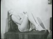 Continuing my exploration of adult fetish material to be had in the Internet Archive, comes this clipped together black and white video from the 60's of a single model dressed in just panties, bound in various poses and struggling about. Includes 2 forward ties, a tie with a wooden pole between her elbows and back, and a hogtie. The music is very much from the time period, and certainly NOT my choice.