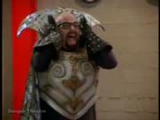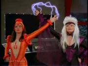 In this program opening from a sitcom about a frustrated actress looking for her big break, Tracy Scoggins plays Invincigirl and Cybill Shepherd plays Galaxy Gal, captured by Dr. Destruction, shackled back to back and about to get sliced with a giant laser. but Invincigirl uses her powers to snap the bonds and Galaxy Gal can use her mega breath spray to deliver a crushing crescendo with her super-powered voice. Truth and justice prevails as the director calls cut and tells everyone to go to lunch.