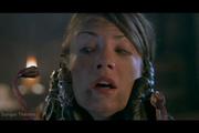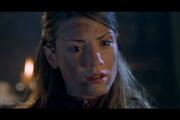 In this dreadfully cheesy movie loosely adapted from the grandfather of all role-playing games, Zoe McLellan plays young mage Marina Pretensa who in this bit is captured by the eeeeevil Damodar as she scrambles to recover a map that leads to a magical rod that can control dragons. He drags her out of the melee with our heroes in pursuit. Later in the dungeons, Marina is interrogated by Damodar but when ordinary persuasion fails he uses the powers of the dread beastie implanted in his head by the wizard Profion to siphon the information out of her head. Ridley rescues her soon after.
