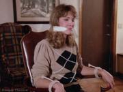 Jeanna Michaels plays Lauren Royce in this extended clip. Lauren and Michael are drawn to an airport, where Lauren is supposed to board a plane for L.A. to make a statement to the police about her father's recent murder. It's a trap ! Lauren is hand-gagged as the plane takes ff. KITT detects the muffled screams and so Micheal gives chase, but his risky rescue attempt fails, leaving him unconscious on KITTs hood and the baddies get away. Lauren is later seen tied up in a chair and cleave-gagged at the baddies hideout. Her gag is removed as the men who betrayed her father arrived and Lauren is held and hand-gagged so she can be injected with a hypnotic drug. After questioning her to no avail, the baddis decide to get rid of Lauren and Micheal's arrival expedites things. Lauren is loaded into a truck and the chase is again on...