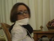 A spectacled beauty sits tied to a chair and OTM gagged with a white scarf.... Pix and video courtesy of