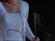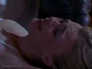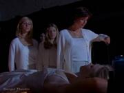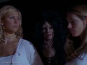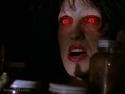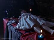 Heather Bertram plays Dana who is pledging a sorority with great pedigree and impeccable reputation- all courtesy of the demon Astaroth whom they worship with a yearly virgin sacrifice. Dana does some snooping when some weird noises from a closet draw her attention. Inside the red velvet curtained interior she discovers skulls, bones, feathers, jars of this and that and the demon monster as well. Dana is chloroformed from behind. She wakes up tied on a table with her arms overhead with the sorority girls on hand as well as Astaroth. The lead girl brandishes a branding iron as the demon demands Dana be examined. She's found unconscious, but unbound and unharmed by the team later.
