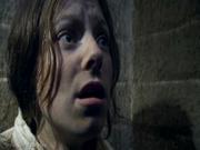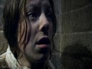 Mia Fernandez plays Sadie in this extended clip from the miniseries focusing on an adventure largely involving The Great Detective's group of street urchins who serve as his informants. Sadie and another girl are scrounging for food in an alley, but are being watched by someone. The other girl suggests its time to bring what they've found back to the gang, but Sadie wants to keep looking for her brother Jack who's gone missing recently. Reluctantly they part ways- there's a scream- and Sadie has vanished. In a cart, Sadie wakes up and tries to stand only to be pinned down with a boot and chloroformed. Later, Sadie is half-carried half-dragged into a building she's cleave gagged. Her kidnapper takes her to an empty room and locks manacles on her wrists. Afterward, the kidnapper brings her some soup and after a stern warning, the gag is taken off and her abductor's face is revealed. Later, Sadie tries to burrow through the mortar holding the bricks of the cell wall, when someone on the other side is doing the same. It's her bother ! Following the reunion, Jack tells her how he was captured as well. Later, the kidnapper takes Jack away warning him to cooperate if he ever wants to see her again. But Sherlock and the other urchins are on the case, find Sadie and rescue her- but in their haste, they've set off a poison gas trap !!