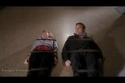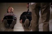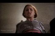 Allison Scagliotti plays Claudia Donovan in this popular Sci-Fi channel series about recovering artifacts with mysterious powers. In this episode, Claudia and her partner have been tracking down a raven quill pen once belonging to Edgar Allen Poe that makes what is written become real. In the final minutes of the episode, they discover that it's in the possession of a disaffected bullied aspiring romantic and poet named Bobby and trace him to a school library. A note with the word "pendulum" etched on it is all it takes to put Claudia and her friend in mortal danger, as a razor sharp pendulum whistles at them from nothing. Straps spring up out of nothing and bind the pair on the floor. Claudia tries to reason with Bobby, to no avail. But elsewhere a literal war of words tips the balance and Bobby drops the poisonous pen. Claudia gets to her feet, suddenly free and puts the pen in a special bag that neutralizes its powers.