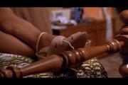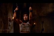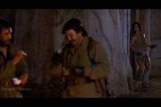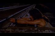 In this extended clip, musclewoman turned model Rachel McLish plays Anna in this action film about a group of retired fighter pilots who take down a Colombian drug lord. In the opening bit, Anna is kept captive in the dungeon, chained up to keep her father compliant and working for the lead baddie. Later, she effects her own escape by using her incredible physique to invert herself off the floor to hook the chains from overhead. After killing a guard or two, she makes her way over to the train tacks and uses the weight of a passing train to snap the chains. She hides among the drug workers as they load a waiting plane with barrels and then smuggles herself aboard it. Later, two thugs track Anna down to a Hispanic tenement and she's attacked. anna holds her own for a while, but a gun in her face takes all the fight out of her. She's gagged and tied to the bed so one thug can deliver the coup de grace with a bullet through the pillow...
