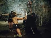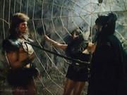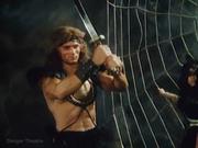 Ritza Brown plays Sunya in this Z-grade Conan clone. Early in the film, she's snatched by raiders working with the Spider King, and later at the palace of the Spider King our hero answers her cries to find her bound to huge rope spider web, being menaced by tarantulas while a huge spider slowly ( and I do mean slllllooooowwwwlllllyyyy) closes in behind her. But Griba his old mentor intervenes in the rescue and reveals his true intentions, leading to slowest, most poorly made sword fight in the history of cinema...