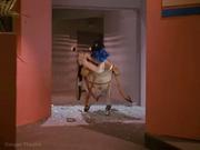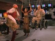 Robin Givens plays intrepid reporter Kimberly Jonz in this comedy about a simpleton who makes himself into a low-budget superhero after discovering a way to make ordinary clothing bulletproof. In this extended clip, Kimberly is kidnapped by a mobster named Minnelli after Blankman thwarts a bank robbery. He taunts our hero to save her. Kimberly is seen chained to a chair at the TV station when our heroes burst in. After a brief fight with Minnelli's thugs, the guys are placed in a watery death trap made out of a lotto ball machine (no, I'm not kidding) with Kimberly and a sleazy tabloid journalist chained up. As an added bonus, there's a bomb in the building with a 5 minute fuse !