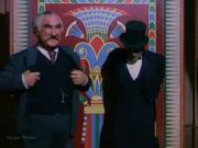 The late Janet Leigh plays Bess Houdini in this classic film based on the life of the legendary escape artist and magician. In the opening bit, Bess assists her husband in his latest illusion The Transformation. She is handcuffed, stuffed into a canvas bag which is tied and locked in a steamer trunk, which is then tied shut. Behind a screen of fan-bearing showgirls, the Houdinis switch places. Later in the film, with her husband sidelined by being locked in the town's "escape-proof" jail on a dare, Bess is forced to masquerade as him onstage, but a man forces his way onstage and locks her in a pair of unopenable manacles. Fortunately the great magician arrives unbeknownst to the audience and together they perform a switch with no one the wiser.