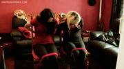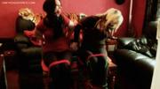 From my kind and generous benefactor and web host Limited Audience comes this video of two pretty Gothy gals tied to chairs with red rope side by side, one ball-gagged the other bit-gagged, struggling for freedom that continues to elude them.