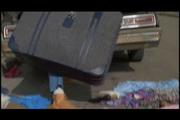 Amy Yasbeck plays loudmouthed harpy Flo, who at the end of this comedy is kidnapped along with the Problem Child by an ex-con the boy has been corresponding with. Flo sits up in the backseat of the getaway car and spits out a gag and proceeds to give the man the riot act. Sick of her endless griping he stuffs her in a large suitcase and crams it in the trunk of the car.