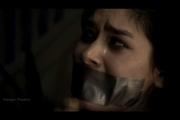 In this extended clip, told in a flashback from a detective's point of view, a young woman sits bound and gagged just out of sight in the lair of a serial killer with thing for young girl's fingernails. Later, the killer abducts the detective's niece, Mija Woo (played by Mizuo Peck). He calls up the detective who is in the process of raiding the killer's apartment to taunt him, with Mija tape gagged blindfolded and bound in the backseat of his car. Afterward with Mija still mmphing in the backseat he tells her how he love that noise. Finally, Mija sits hooded, gagged and duct taped to a chair with on hand taped to a table with her fingers separated while the killer gyrates to metal music trying to psych himself up for th deed. He yanks off the hood and torments Mija, and takes of her gag to try and get her to kiss him- but she refuses and he's furious. Fortunately for her, the good guys burst in before the killer can get to work on her.